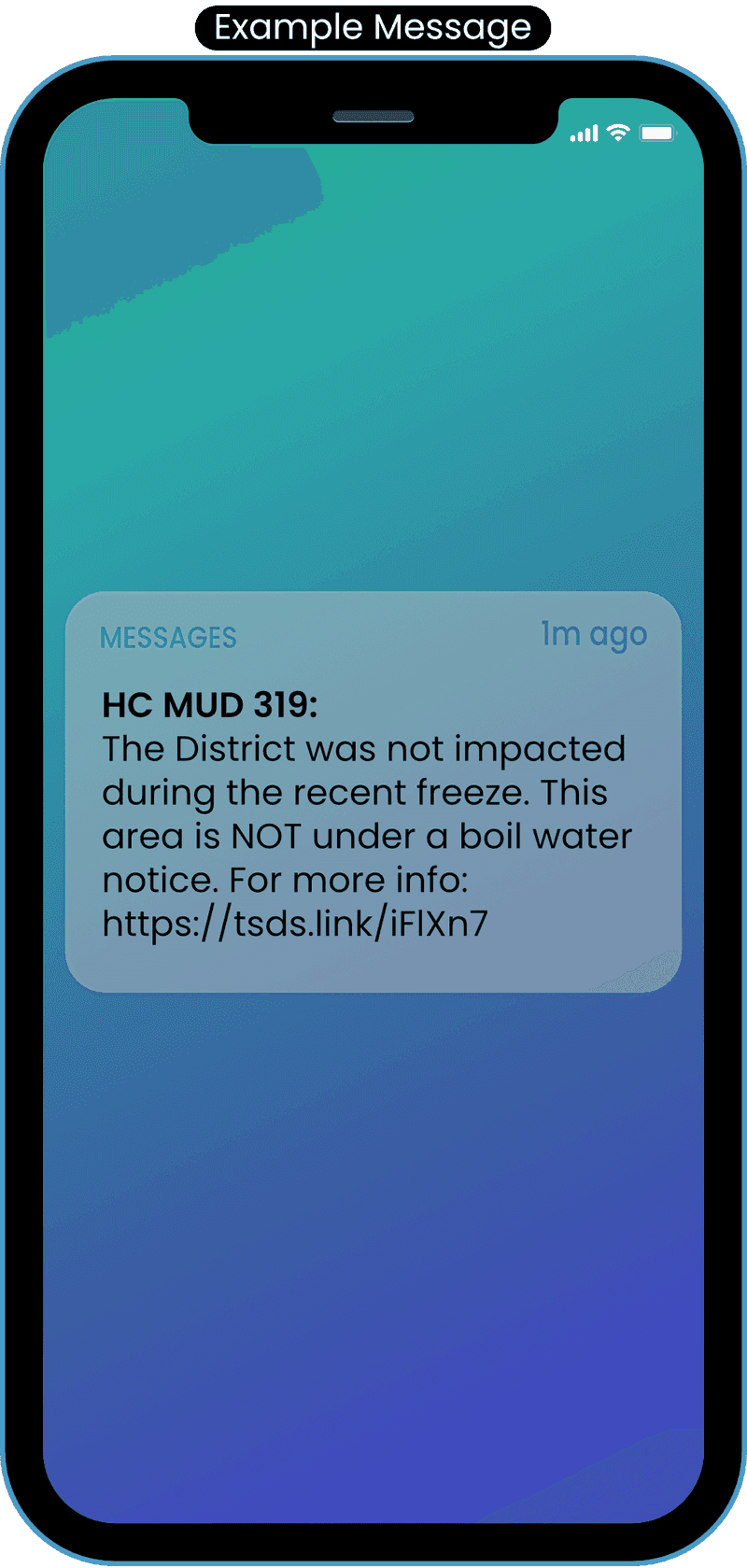 Residents registered for this free service will receive text and/or email notification explaining the basics of the situation with a short link to the news post on the District website with more complete details.